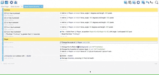 Now all the events are ready for shooting Enemies. You can add a comment on the top to classify these actions.
